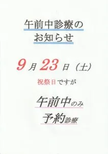 9/23(土)午前中診療