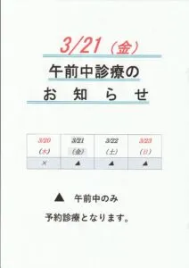 午後中診療となります